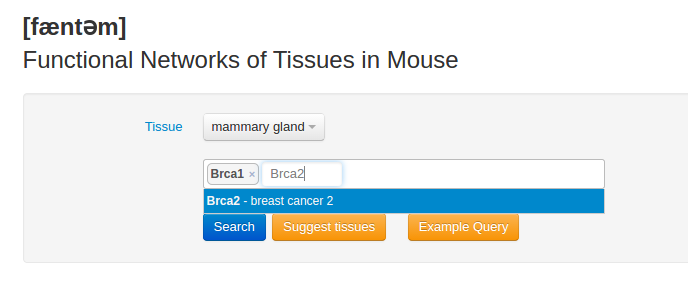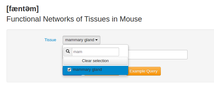 1.1 To use FNTM, first select a tissue and input one or more genes.